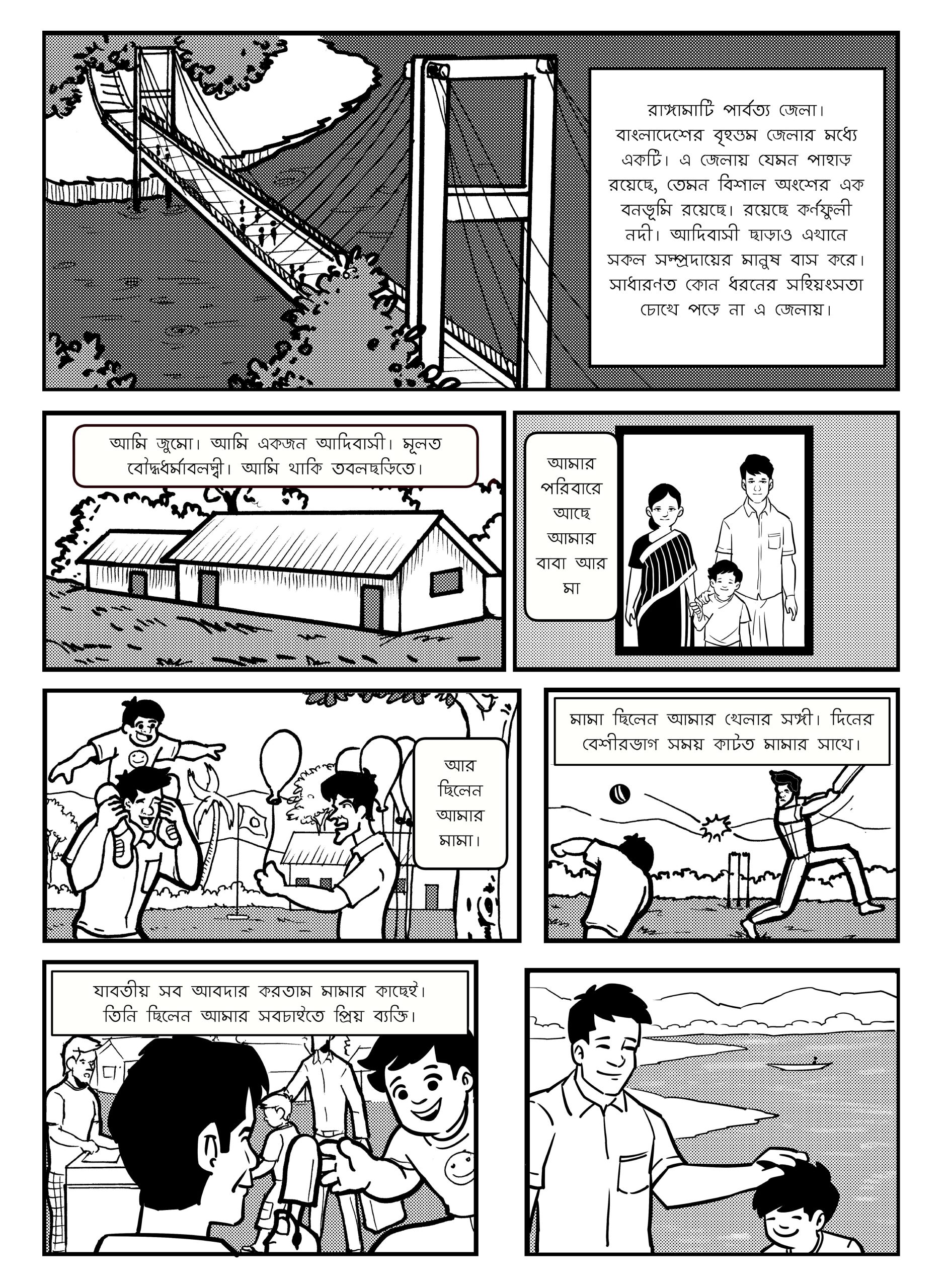 রাঙ্গামাটির তবলছড়িতে বেড়ে ওঠা দুরন্ত কিশোর জুমো। দারুণ ভাব মামার সাথে। ছোটবেলা থেকেই মামা তার সবচেয়ে ভালো বন্ধু। একটু বড় হবার পরে মামা হঠাত সন্ন্যাসজীবন বেছে নিলেন। ধ্যান করা দেখে দেখে জুমোরও শখ হত মামার সাথে ধ্যানে বসতে। ভালই চলছিলো সব। এমন সময় একদিন হঠাতই সড়ক দূর্ঘটনায় মামা নিহত হলেন। আর সেই সময়েই জুমো আবিষ্কার করল এক অবিশ্বাস্য ঘটনা। তাহলে কি মামার সাথে করা সেই ধ্যান কাজে লেগেছিলো? আর হঠাত উদয় হওয়া ‘সুলো’ নামের এই লোকটাই বা কী বলছে? তিন খণ্ডে সমাপ্য মৌলিক এক গল্পে দারুণ করে বলা সব্যসাচী চাকমার কমিক্স ‘জুম’ এর প্রথম পর্ব।